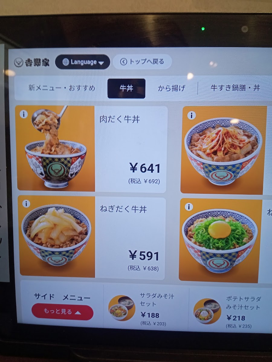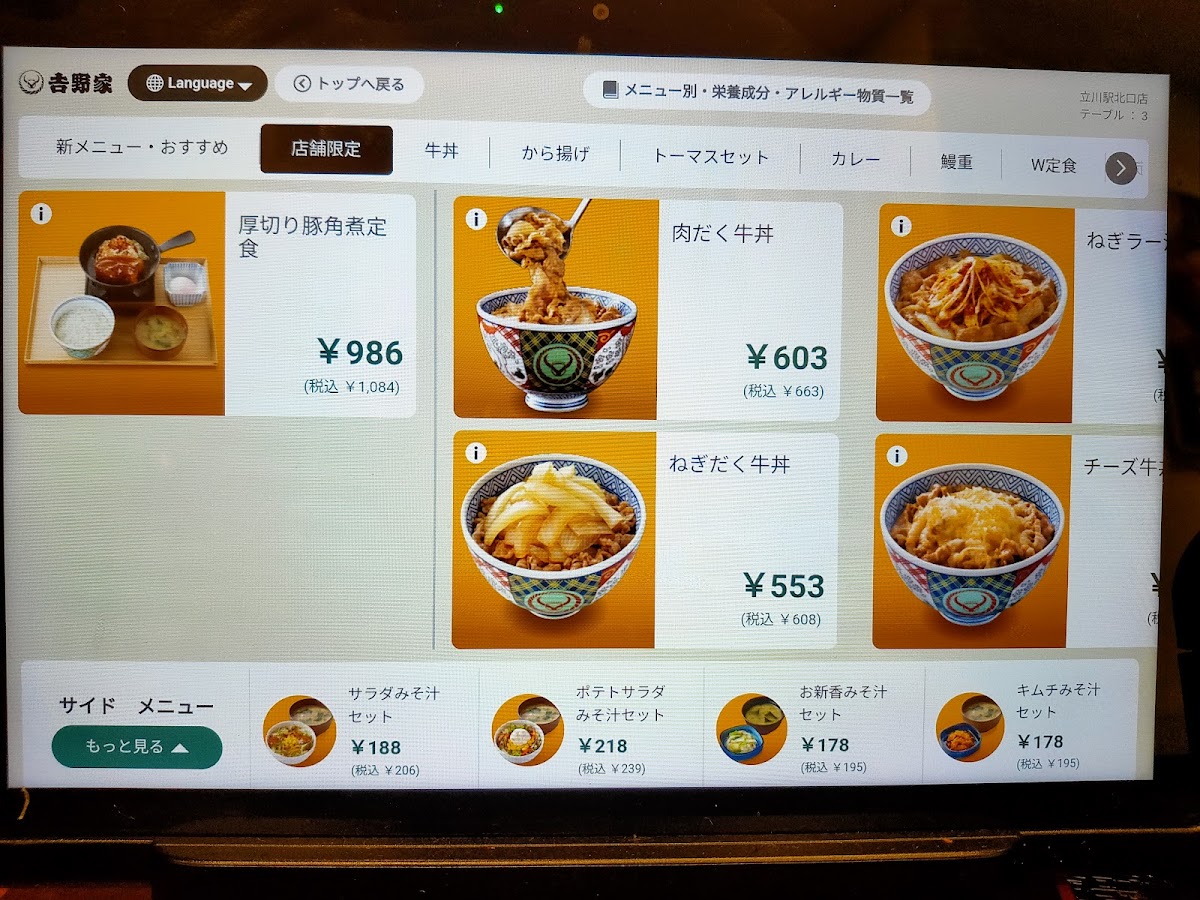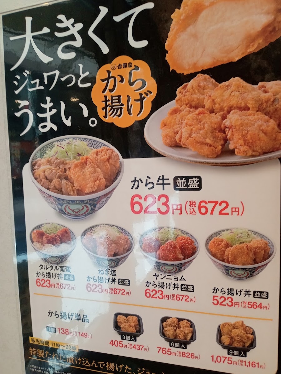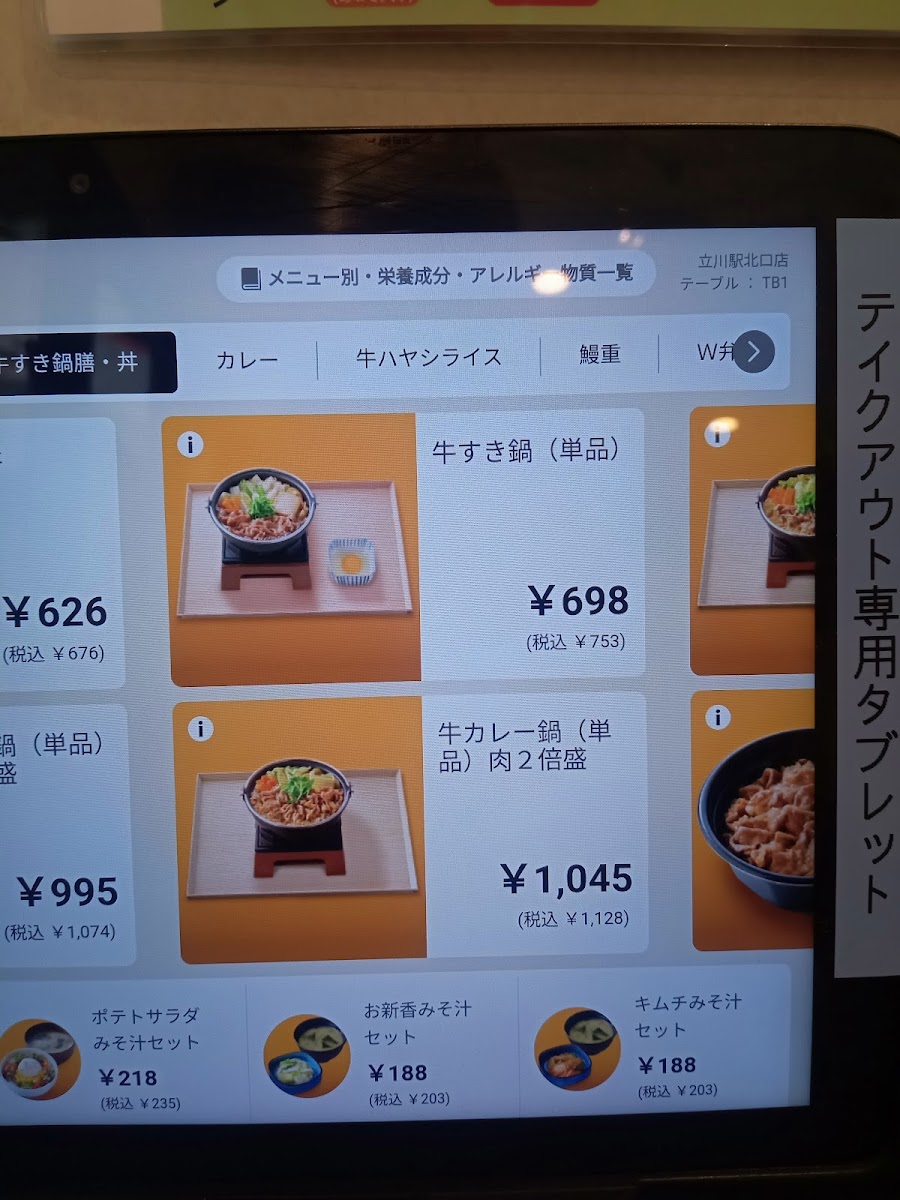 The menu at Yoshinoya Tachikawa Sta. North Exit Shop offers a variety of flavorful Japanese comfort foods that are sure to satisfy any craving. The standout dish is the からあげ黑カレー, which features crispy fried chicken paired with a rich, dark curry sauce. Another popular option is the 牛丼ととん汁, a combination of the classic beef bowl served alongside a savory pork miso soup. For those looking for something heartier, the 牛カレー鍋膳 is a must-try, with tender beef and curry served in a hot pot. The restaurant also offers lighter dishes like the 親子丼, a delicious chicken and egg rice bowl. For those seeking a more indulgent experience, the 厚切り豚角煮定食 is a perfect choice, offering thick-cut braised pork belly served with rice and sides. The から牛 combines fried chicken and beef, offering the best of both worlds, while the 角煮です showcases tender braised pork in a rich, flavorful sauce. With a menu that balances both classic favorites and more innovative offerings, Yoshinoya Tachikawa is a great destination for those craving delicious, satisfying Japanese meals.